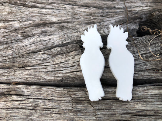 White Cockatoo Bird Resin Earrings