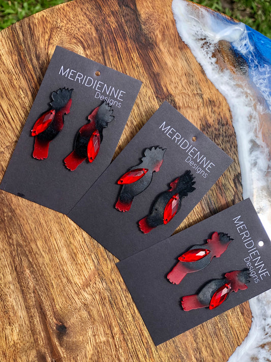 Red Tailed Black Cockatoo resin earrings
