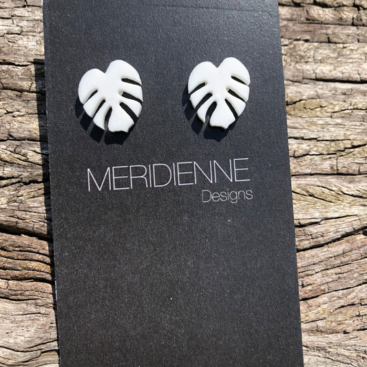 White Monstera Resin Earrings